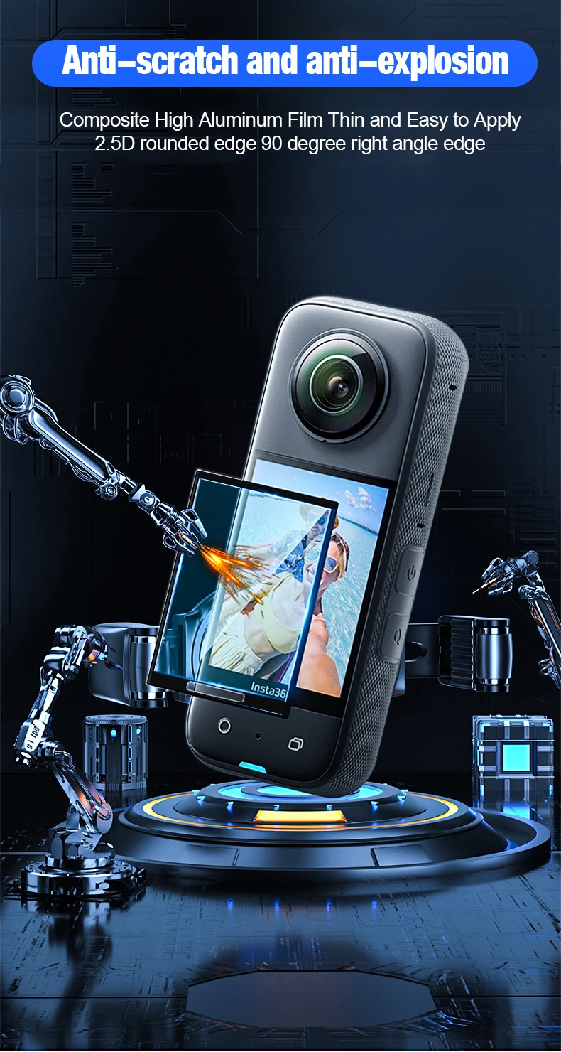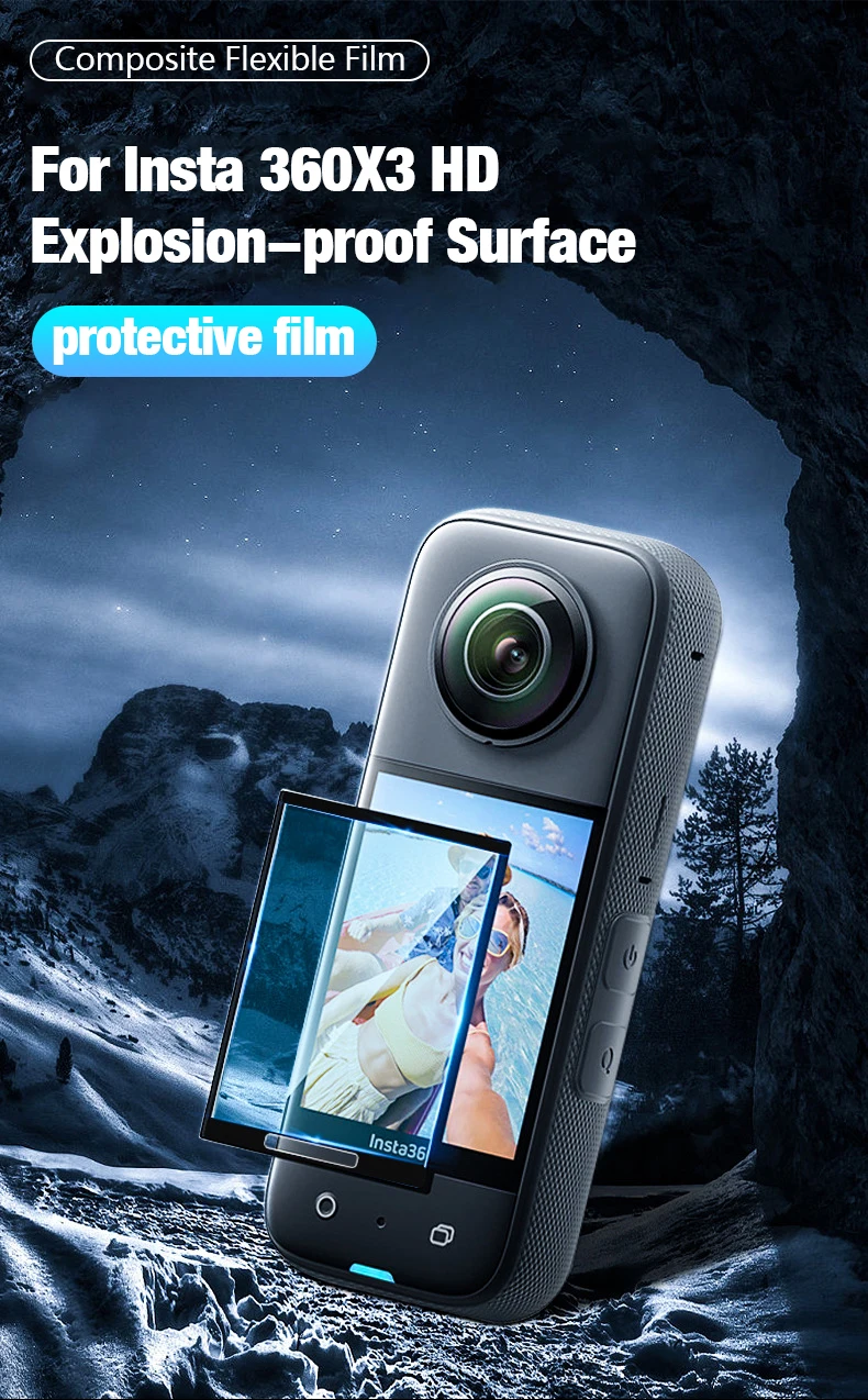 For Insta360 X3 Accessories 9H Hardness Curved Surface Tempered Glass Film Screen Protector