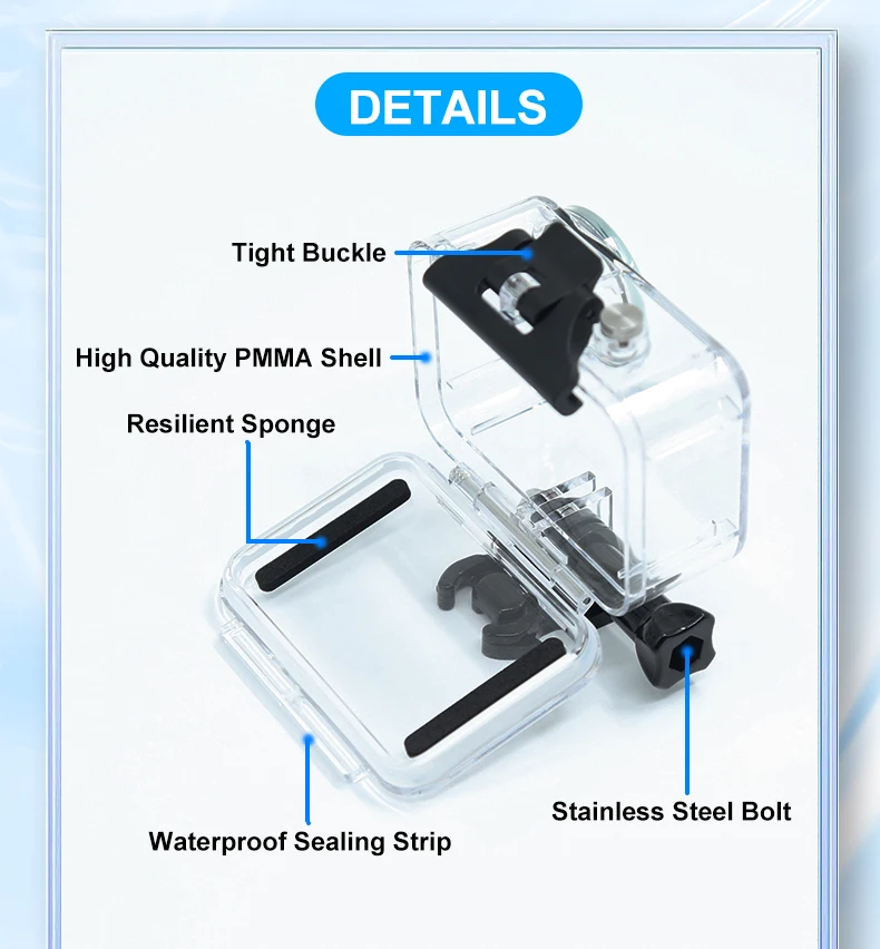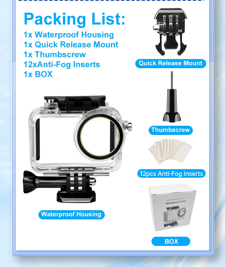 Accessories:   Waterproof Shell + Adapter mount + Thumb screw