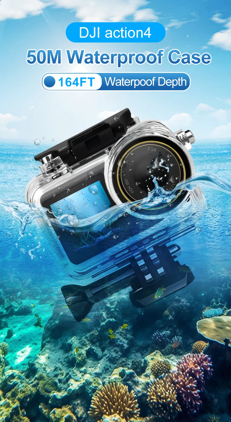 HONGDAK for DJI Action 4 50m Waterproof Underwater Diving Housing Case for DJI Action 4 -- Action Sports Camera Accessories