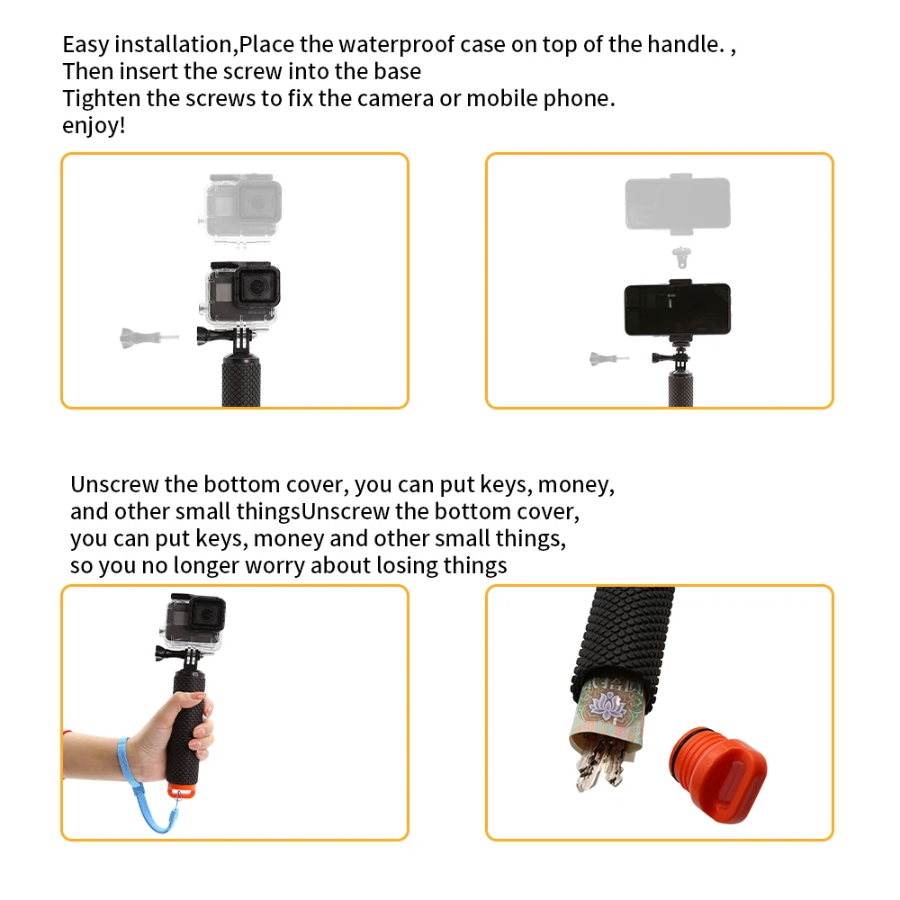 Hongdak Waterproof Floating Hand Grip for GoPro 10 9 8 7 DJI Osmo Xiaomi Yi Action Camera Anti-Slip Floaty Bobber Selfie Stick